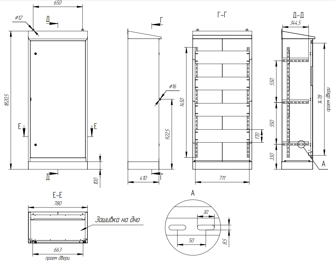 В нижней части двери и каркаса имеются шпильки для заземления. По умолчанию корпуса изготавливаются с правым